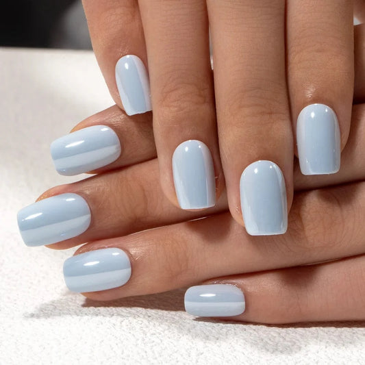 Blue Sky (Glazed) - Soft Gel Press Ons (Short Square)