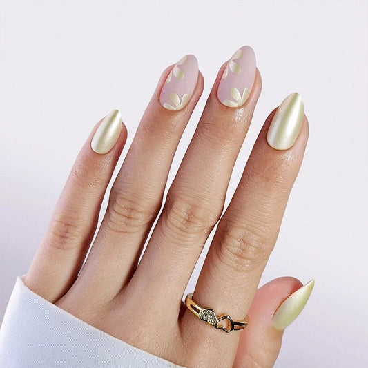 Pearl Flower - Soft Gel Press Ons (Short Almond)