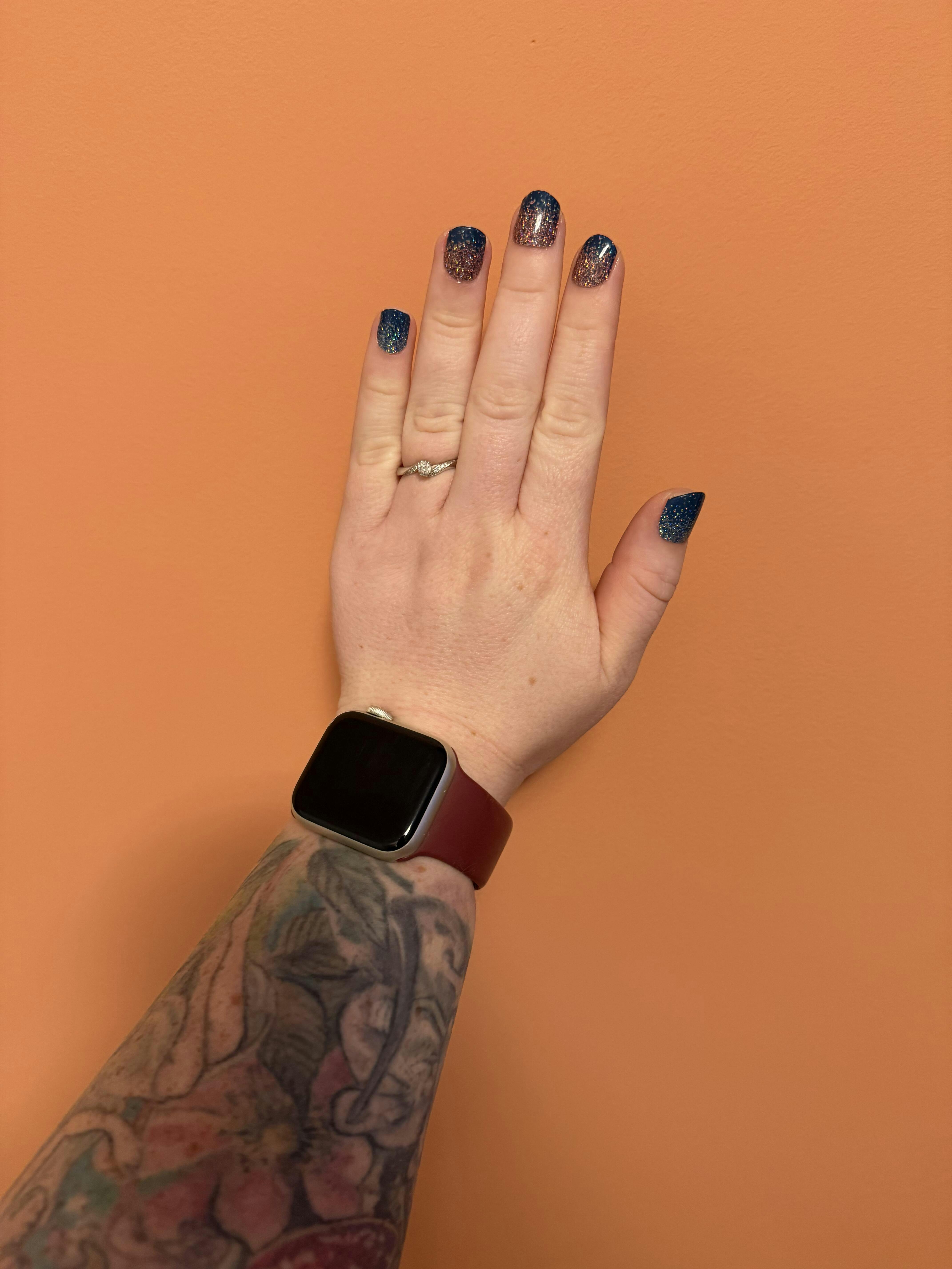 Bought these back in June but decided to wait till later in year as thought were more wintry looking. I need not have waited, really pretty and would suit any season. Lovely sparkle. As always great quality and easy to use. I can never comment on longevity of wraps as am too impatient to move on to the next exciting design, that said they always take some time to ease off, so assume would last much longer than my time allocated to each, best time about 10 days! I work in retail so wraps are definitely hard wearing.Pictures don’t always give the best impression but this one is true. Another success.