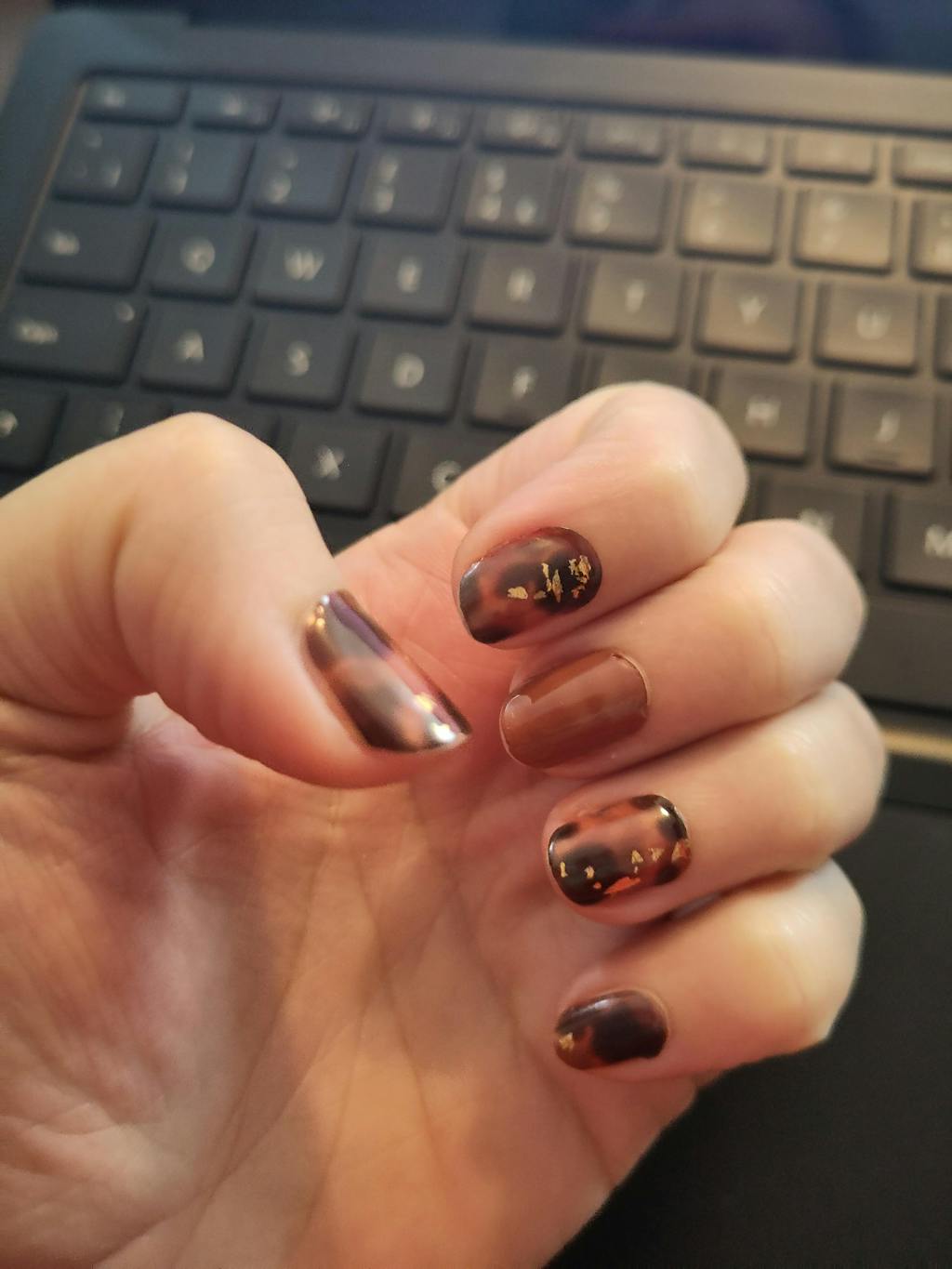 This is the second manicure from this set, mixed with a bit of chocolate brown. They have a nice stretch and are perfect for autumn.