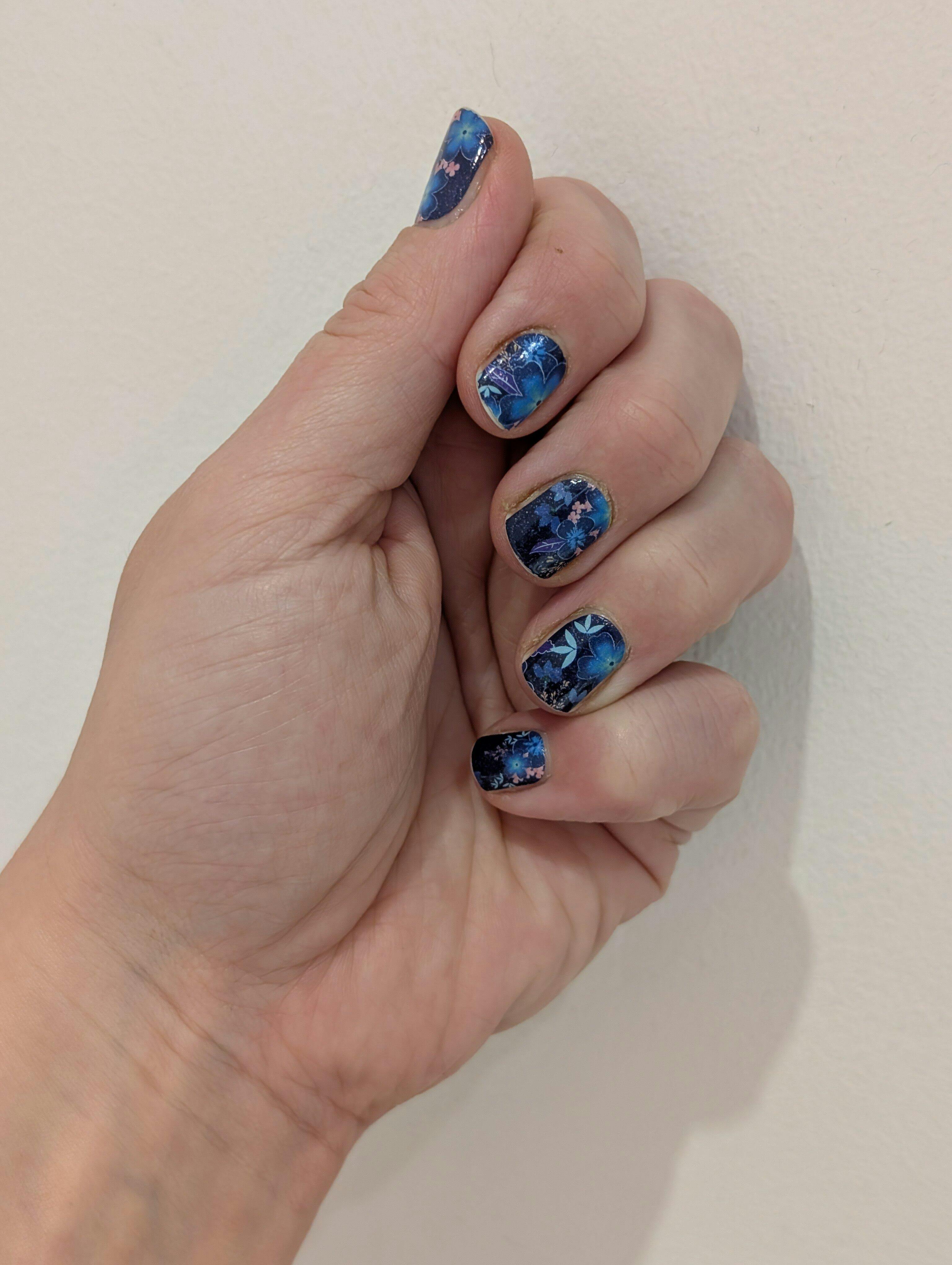 3rd set now and I have received so many compliments. This design is really pretty. Finding it easier to apply each time, removal is super easy and nails remain in good condition. Just love them. These are 4 (very busy) days in and going strong.